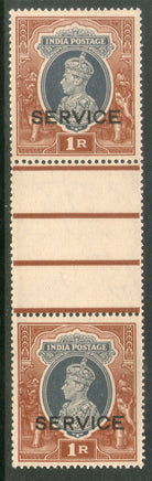 India 1937 King George VI 1 Re Service Phila-S146 Vertical Gutter Pair MNH # 2246