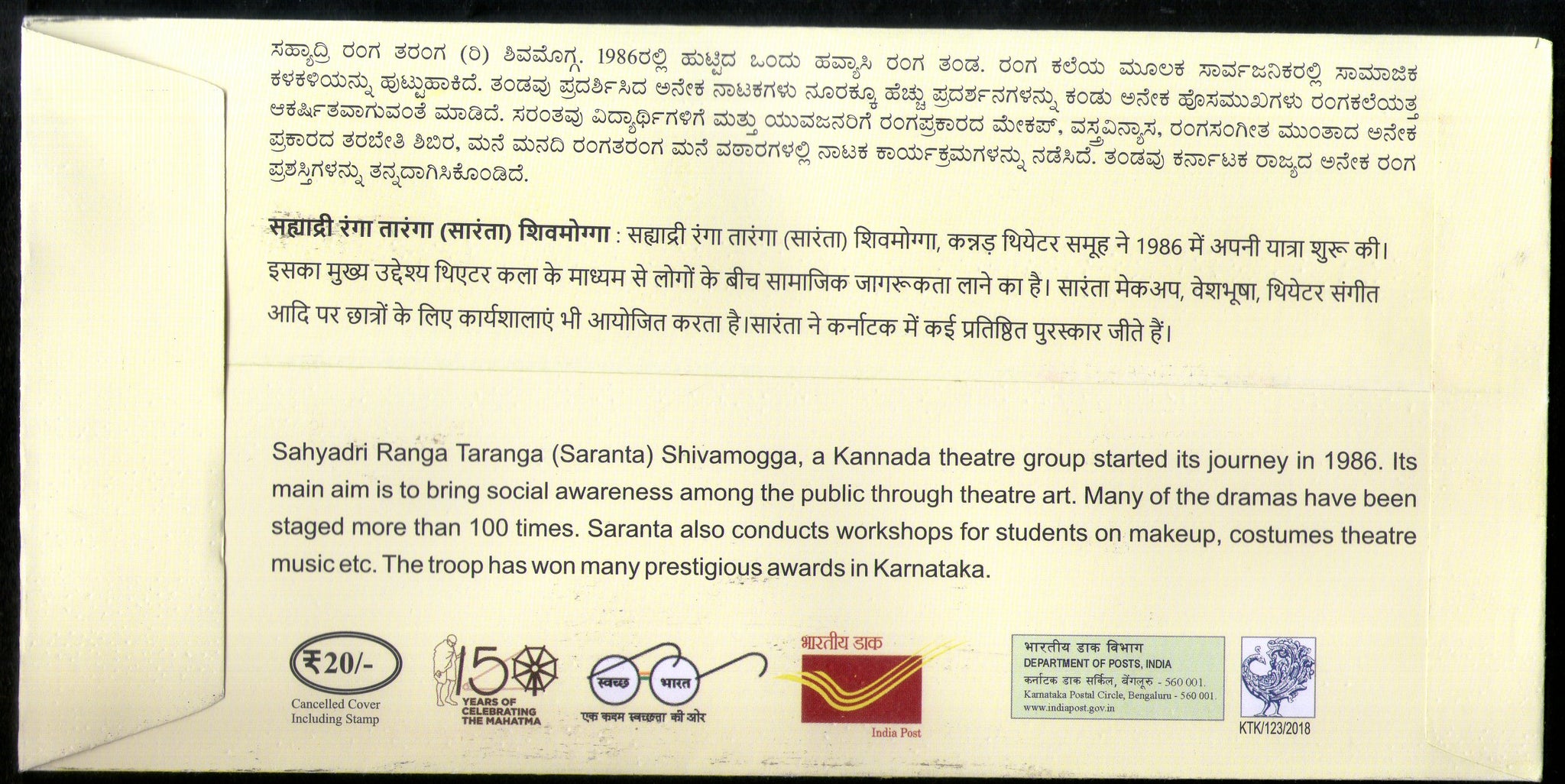 India 2018 Sahyadri Ranga Taraga Theater Art Dramas Music Special Cover # 18550