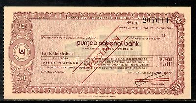 India Rs.50 Punjab National Bank Traveller's Cheques ' SPECIMEN ' RARE # 5823A