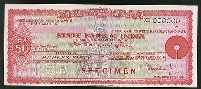 India Rs.50 State Bank of India Traveller's Cheques ' SPECIMEN ' RARE # 16131