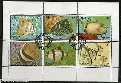 Sharjah - UAE 1972 Marine Life Fishes Fauna Sheetlet Cancelled # 6778