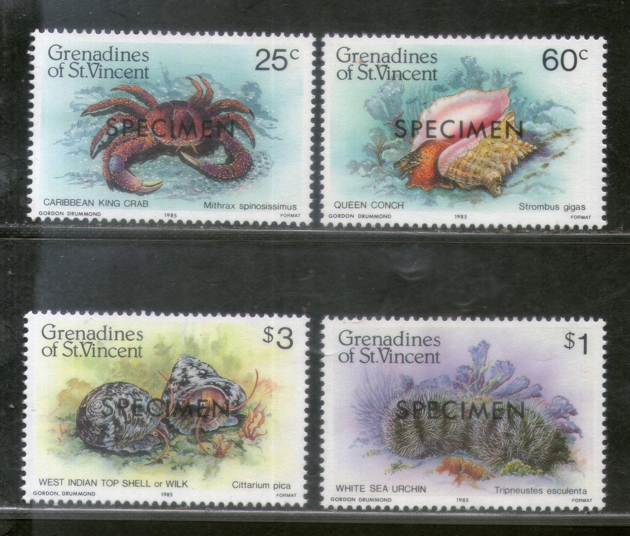 St. Vincent Grenadines 1985 Shellfish Marine Life SPECIMEN Sc 472-75 MNH # 504