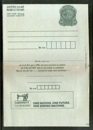 India 1989 35+15p Peacock Inland Letter Card with Sewing Machine Advertisement ILC MINT # 256FL