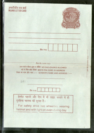 India 1991 75p Peacock Inland Letter Card with Road Safety Advertisement ILC MINT # 291FL