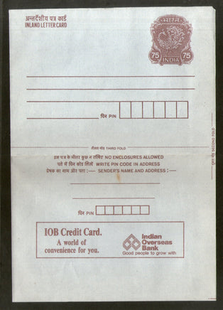 India 1992 75p Peacock Inland Letter Card with Overseas Bank Advertisement ILC MINT # 296FL