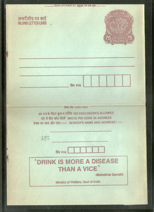 India 1996 75p Peacock Inland Letter Card with Mahatma Gandhi Drink----Advertisement ILC MINT # 385FL