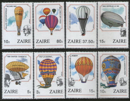 Zaire 1984 Balloon Manned Flight Aviation Zeppelin Sc 1460-67 8v MNH # 273