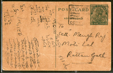 India 1937 KGV 9ps Post Card DERA GHAZI KHAN Slogan Canc now in Pakistan # PH3034