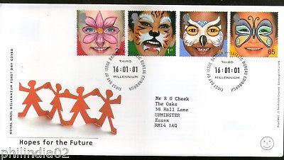 Great Britain 2001 Millennium Painted faces of children Tiger Owl 4v FDC # F31