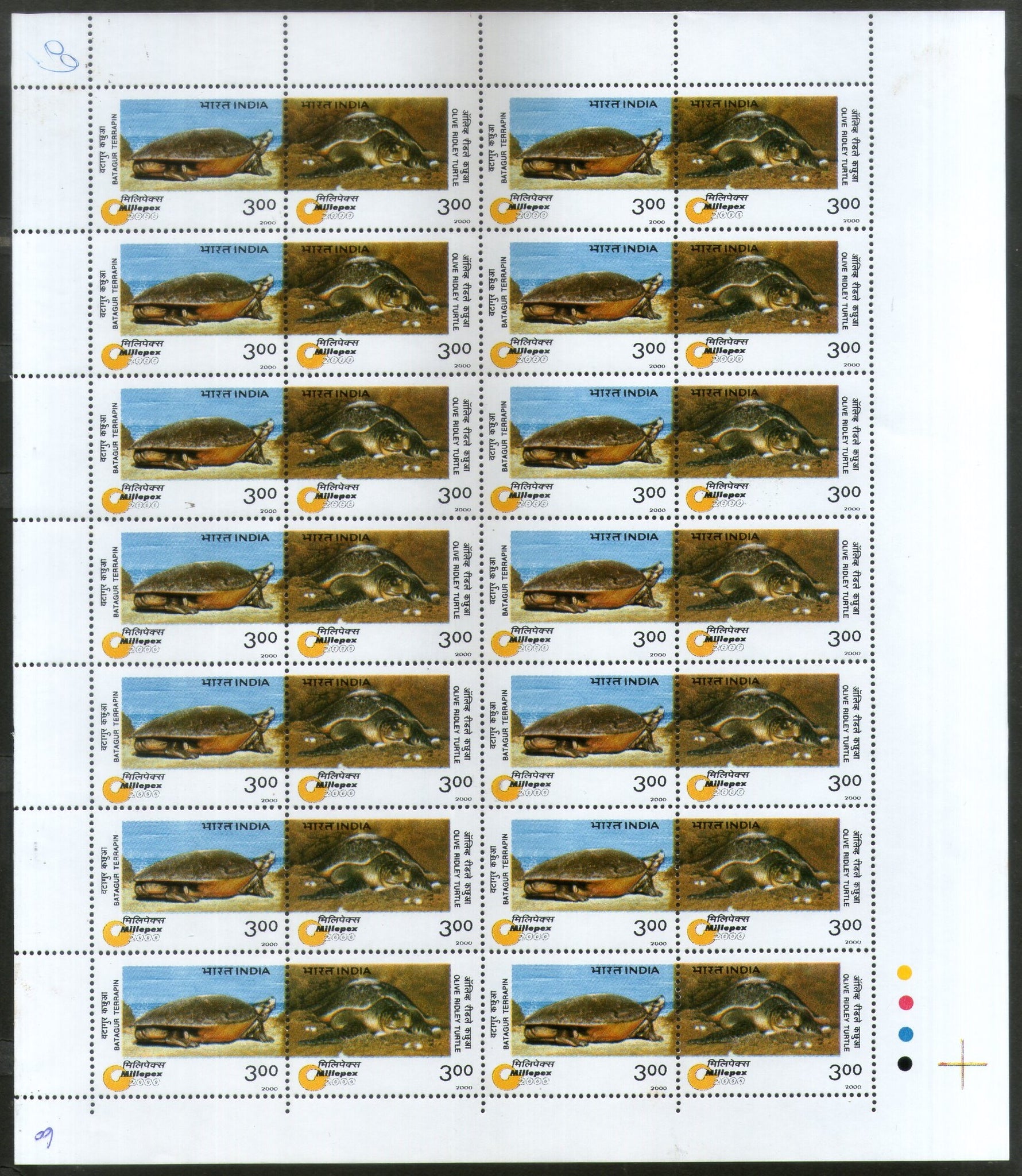 India 2000 Turtle Phila 1744 Se-tenant Full Sheet of 28 Stamps MNH # 79