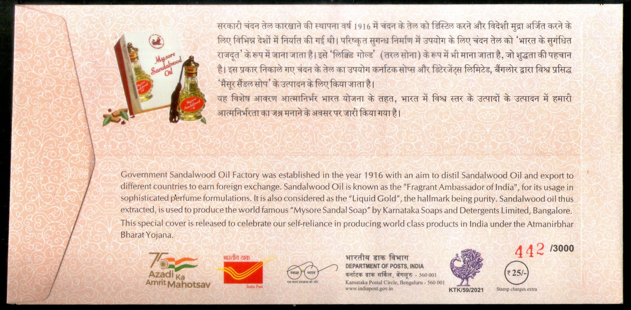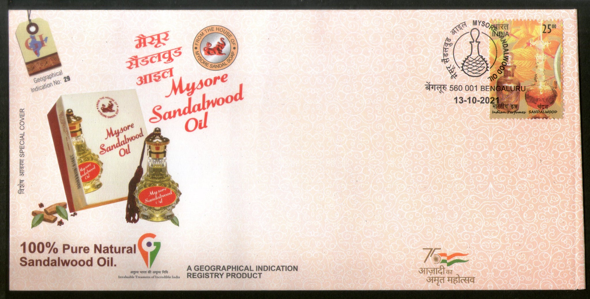 India 2021 Mysore Sandalwood Oil Perfume GI Tag Special Cover # 18304