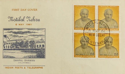 India 1961 Motilal Nehru Phila-354 BLK/4 FDC # 13268