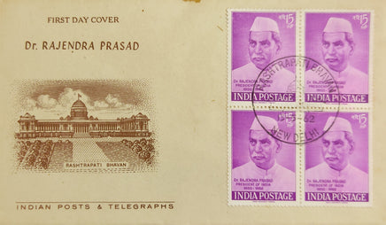 India 1962 15p Rajendra Prasad Phila-371 BLK/4 FDC # 12862
