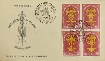 India 1962 Malaria Eradication Health Phila-370 BLK/4 FDC # 13381