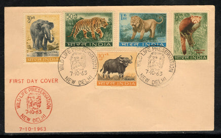 India 1963 Wild Life Preservation Lion Tiger Panda Elephant Ox Animals Phila 388-92 Private FDC # 13126