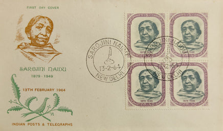 India 1964 15p Sarojani Naidu Phila-400 BLK/4 FDC # 13209
