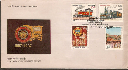 India 1987 Cent. of South Eastern Railway Locomotive Phila-1070-73 FDC