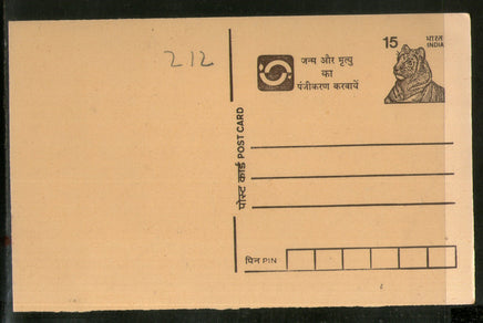 India 1995 15p Tiger Birth & Death Registration Advertisement Post Card # PCA182