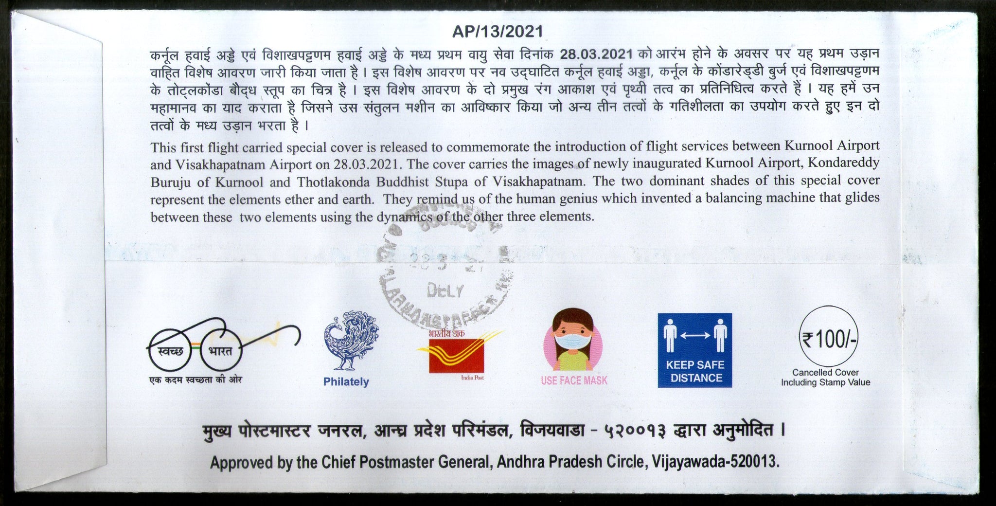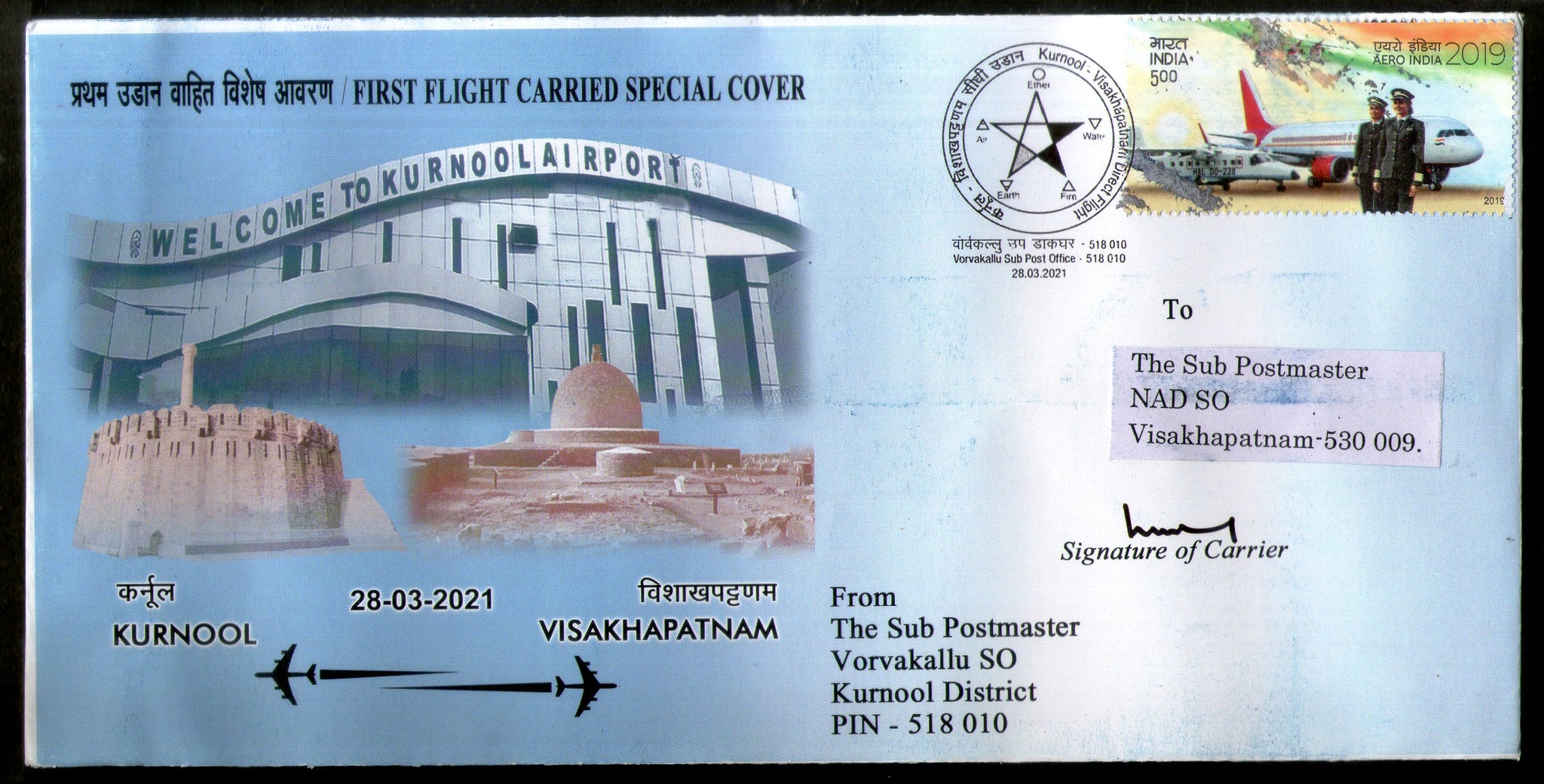 India 2021 Kurnool To Visakhapatnam Air India Carried First Flight Cover # 18788