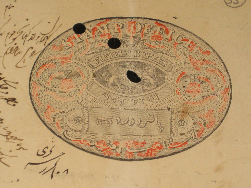 India Fiscal 15 Rs. Congreve Stamp Paper Type 13 Die-46 Coat of Arms # B035