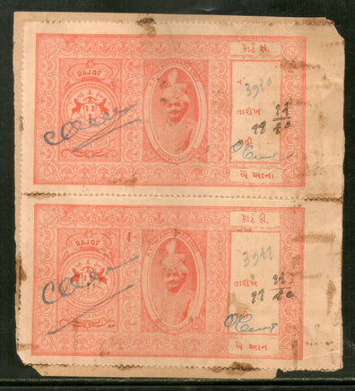 India Fiscal Revenue Court Fee Princely State - Dhrangadhra ERROR - ANN For Anna in Lower 2As CF Stamp Type 16 # 7554