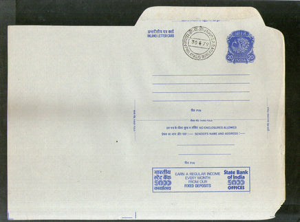 India 1979 20p Peacock Inland Letter Card with State Bank Fixed Deposit Advertisement ILC MINT # 146FD