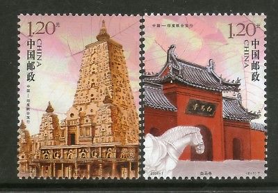 China P. R. 2008 India Joints Issue Buddha Bodhi Temple White Horse 2v MNH # 2156