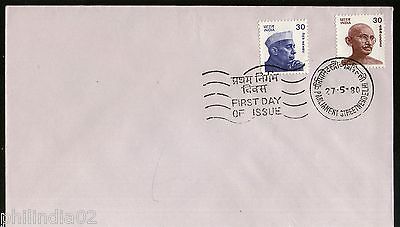 India 1980 Def. Series Gandhi & Nehru Phila-D135, D140 Plain FDC # 12597