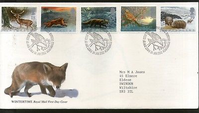 Great Britain 1992 Animals in Wintertime Fox Brown Hare Welsh Wildlife FDC #F117