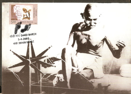 India 2005 Mahatma Gandhi Dandi March Spinning Wheel DANDI Sp. Max Card # 9078