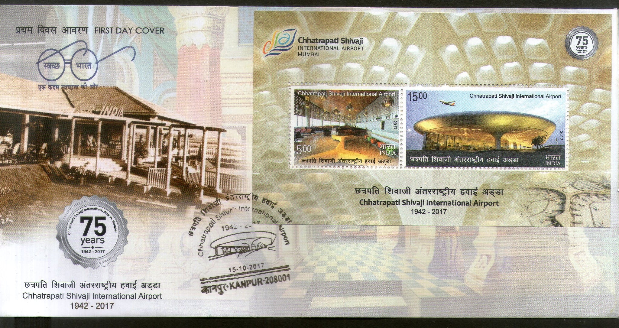 India 2017 Chhatrapati Shivaji International Airport Old & New Aviation M/s on FDC