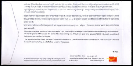 India 2017 Lion Tailed Macaque Baboon Monkey Wildlife Animal Special Cover 18270