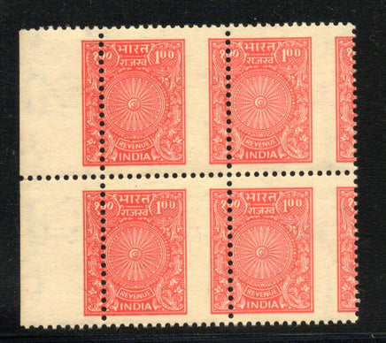 India 19090’s 100p Revenue Stamp BLK/4 ERROR Perf shifting MNH # 607