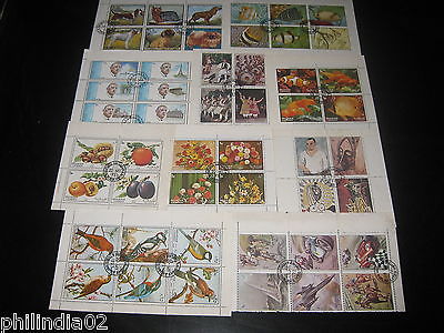 Sharjah - UAE 1972 Breeds of Dogs Fish Fruit Birds Dance Car 10 Sheetlets Cancelled