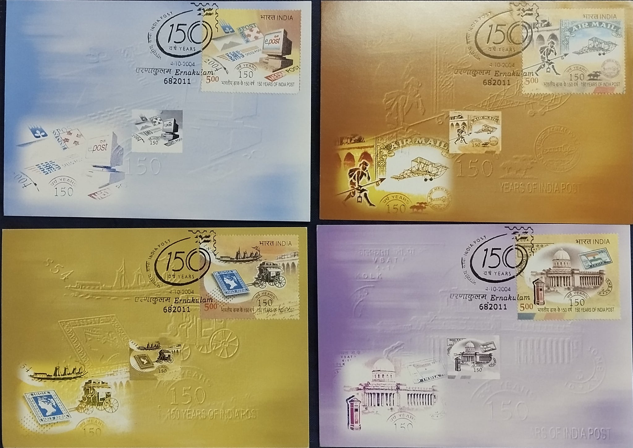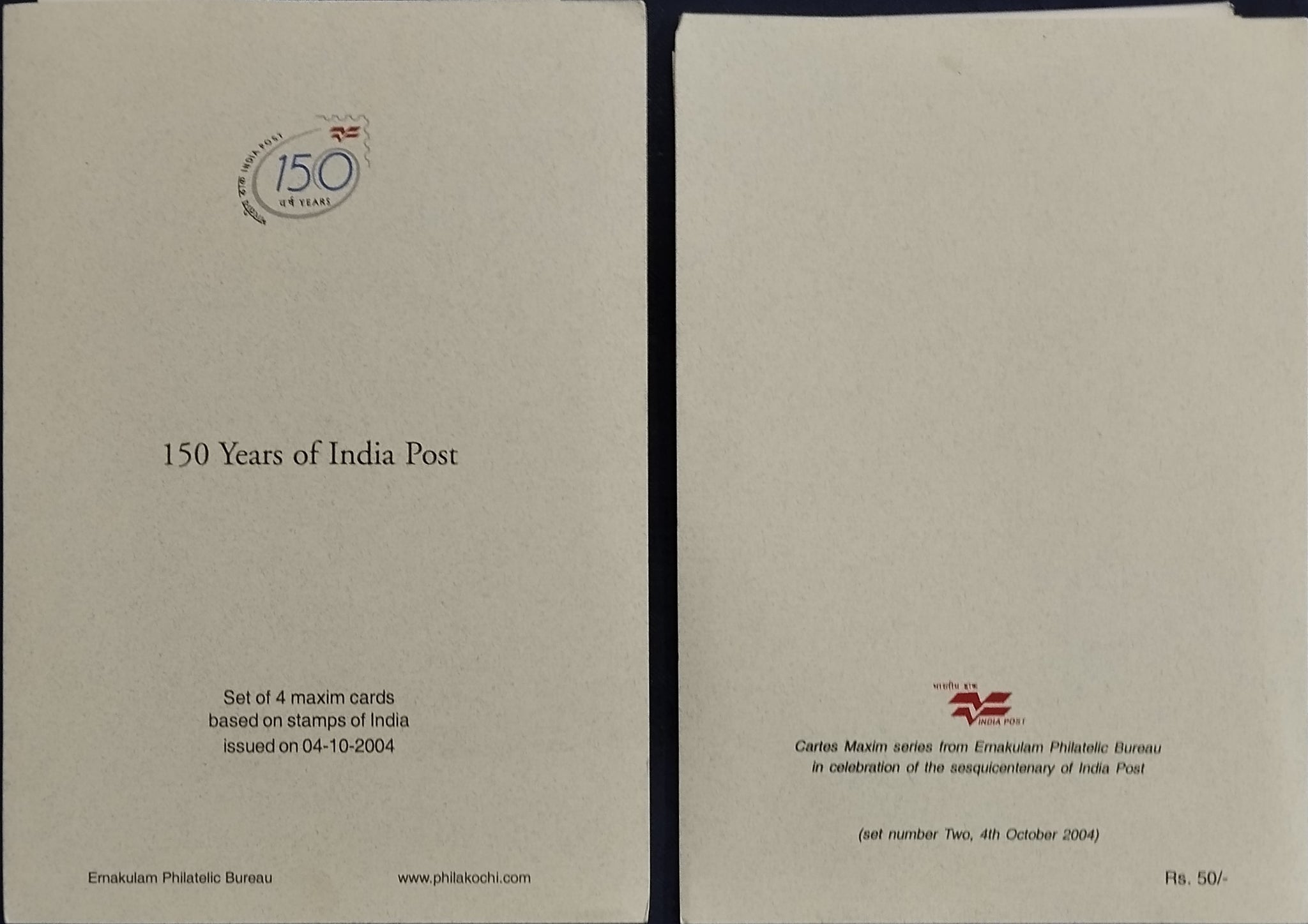 India 2004 150Years of India Post Phila-2071-74 Set of 4 Max Cards Presentation Pack With Stamp & Cancelled # 9253