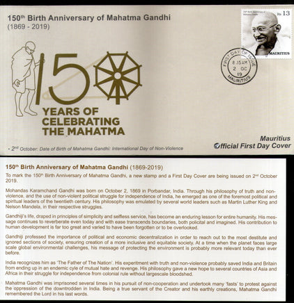 Mauritius 2019 Mahatma Gandhi of India 150th Birth Anniversary 1v FDC # 167
