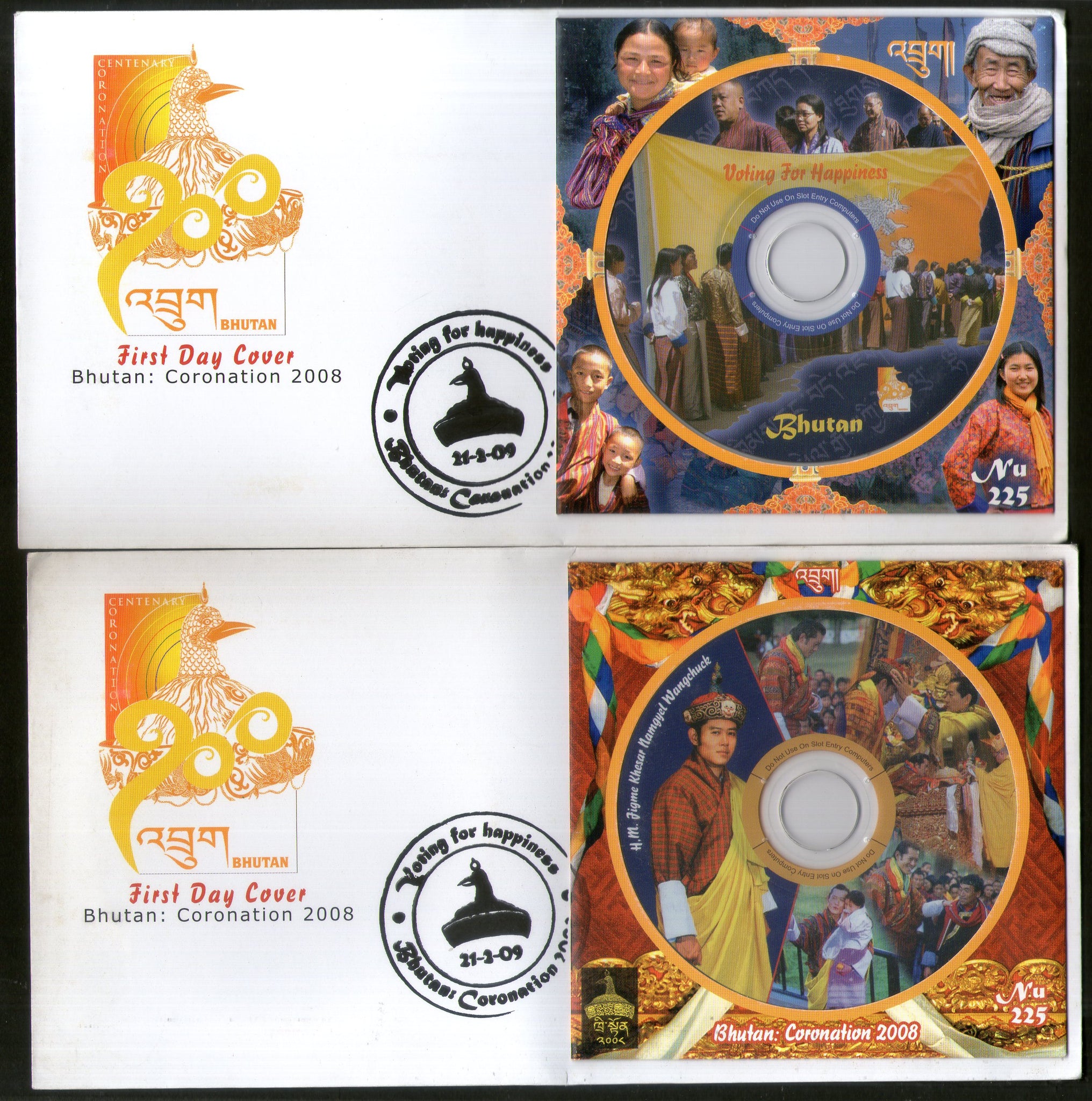 Bhutan 2009 King Wangchuk Coronation Voting for happy CD ROM Stamps Set of 2 FDCs # 7094