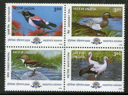 India 2000 Migratory Birds Stork Rosy Pastor Wagtail Teal Se-tenant Phila-1767 MNH