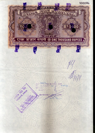 India Fiscal Rs.1000 Ashokan Stamp Paper Court Fee Revenue WMK-16 Good Used # 84D