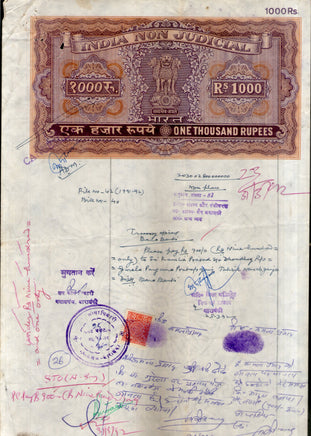 India Fiscal Rs.1000 Ashokan Stamp Paper Court Fee Revenue WMK-16 Good Used # 84B