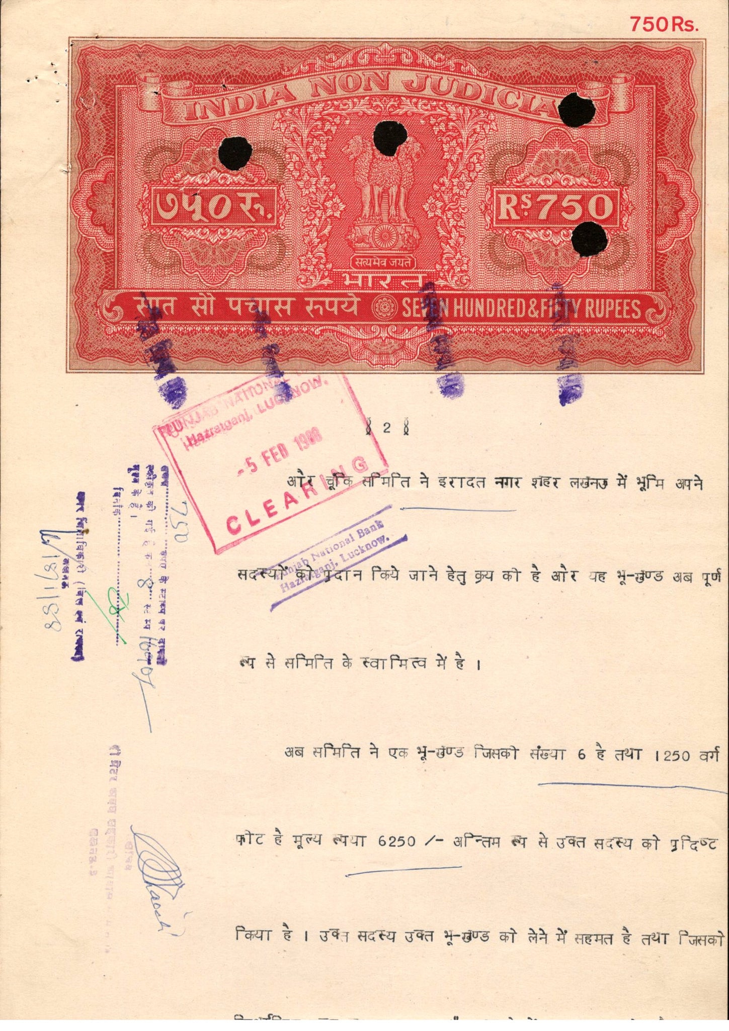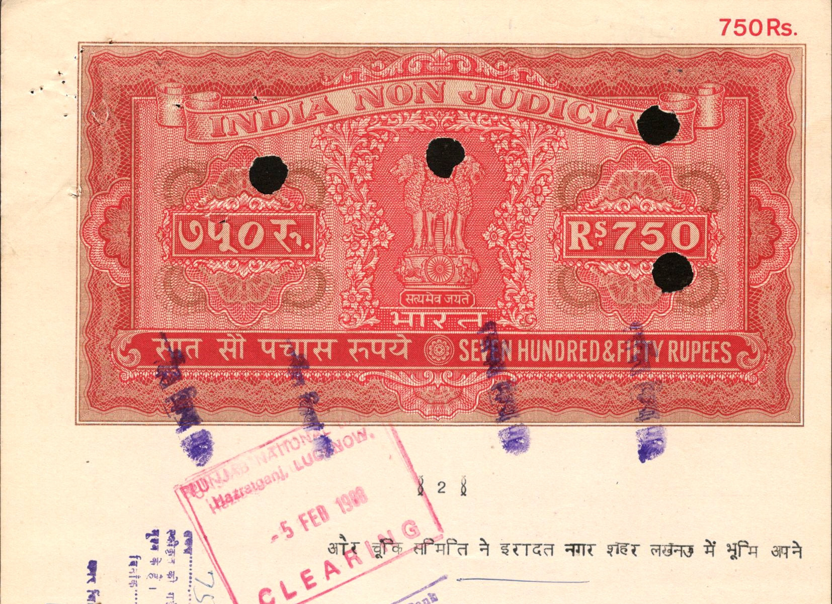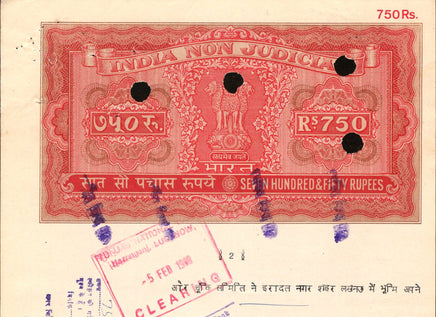 India Fiscal Rs.750 Ashokan Stamp Paper Court Fee Revenue WMK-17 Good Used # 30D