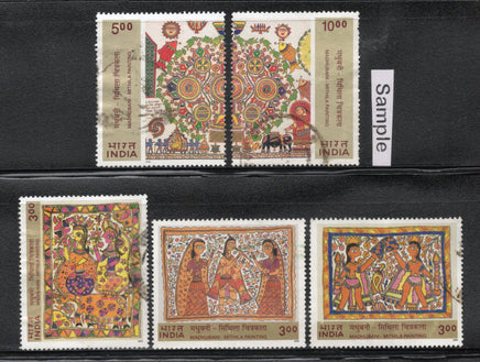 India 2000 Madhubani Painting Art Phila-1787-91 Used Stamp Set