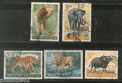 India 1963 Wild Life Preservation Lion Tiger Panda Elephant Phila-392a Used Set