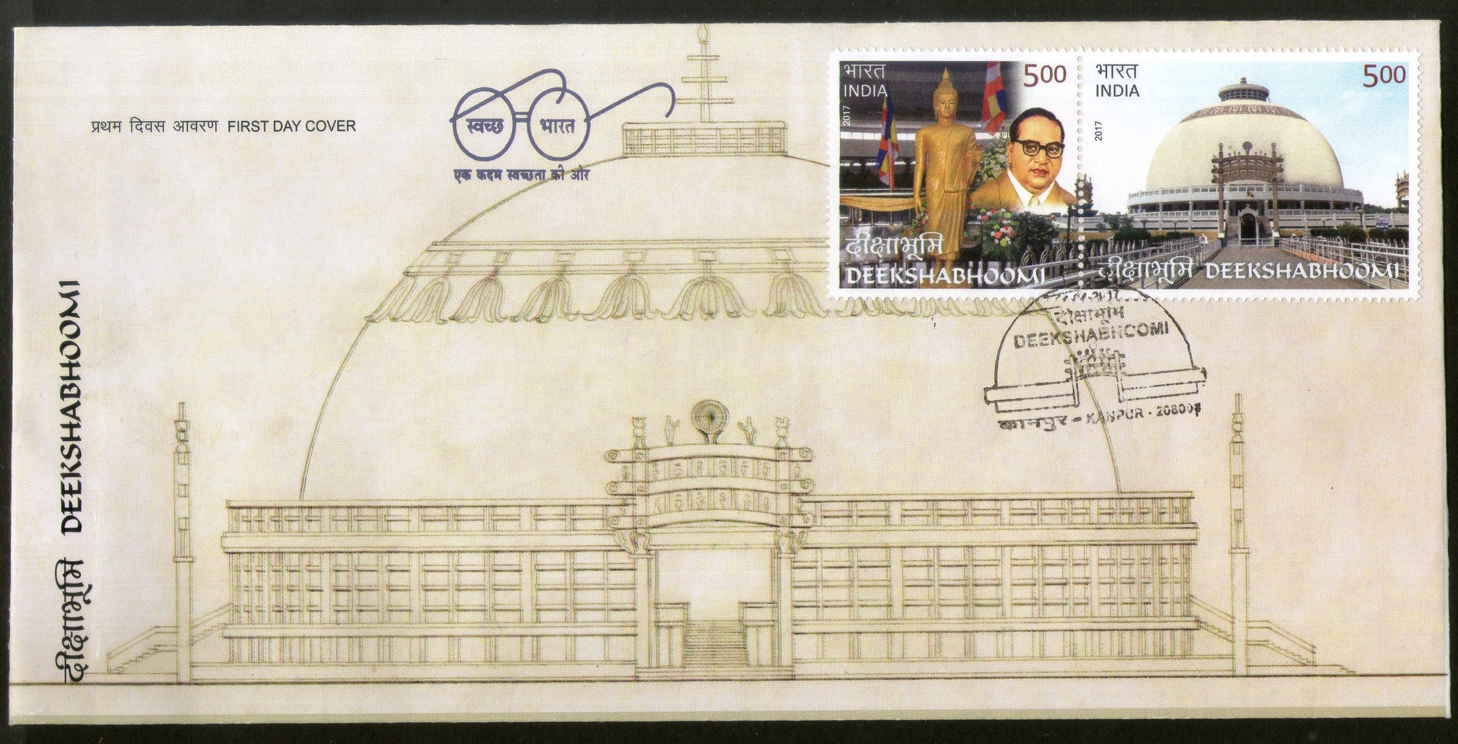 India 2017 B. R. Ambedkar Buddha Deekshabhoomi Stupa Flag Se-Tenant FDC