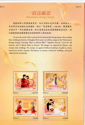 Taiwan Rep. of China 2014 Felicitations Wedding Greetings 4v MNH Presentation Folder # 7593