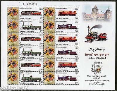 India 2011 INDIPEX Full Steam Ahead Locomotive My Stamp Se-tenant Cust. Sheetlet