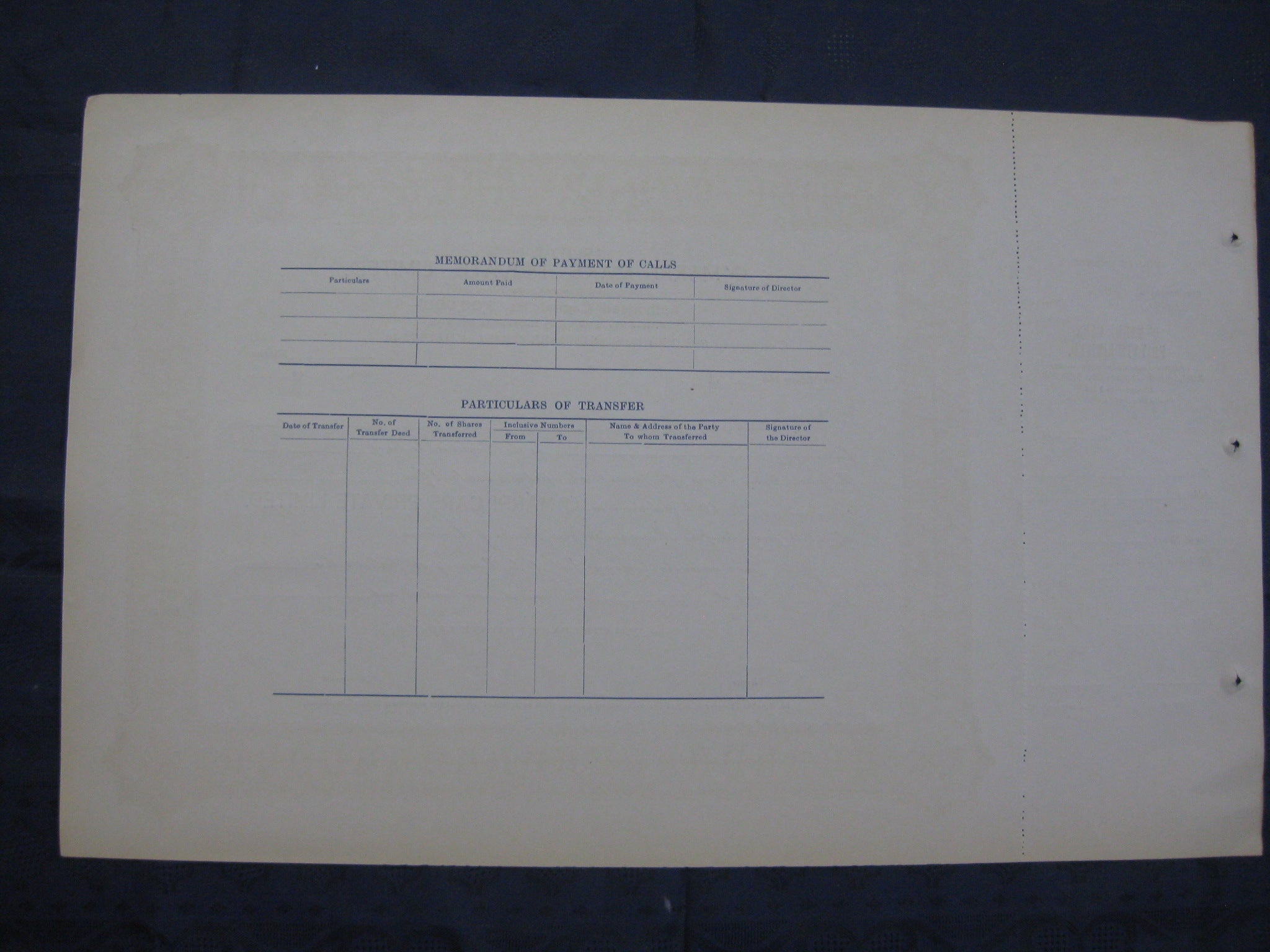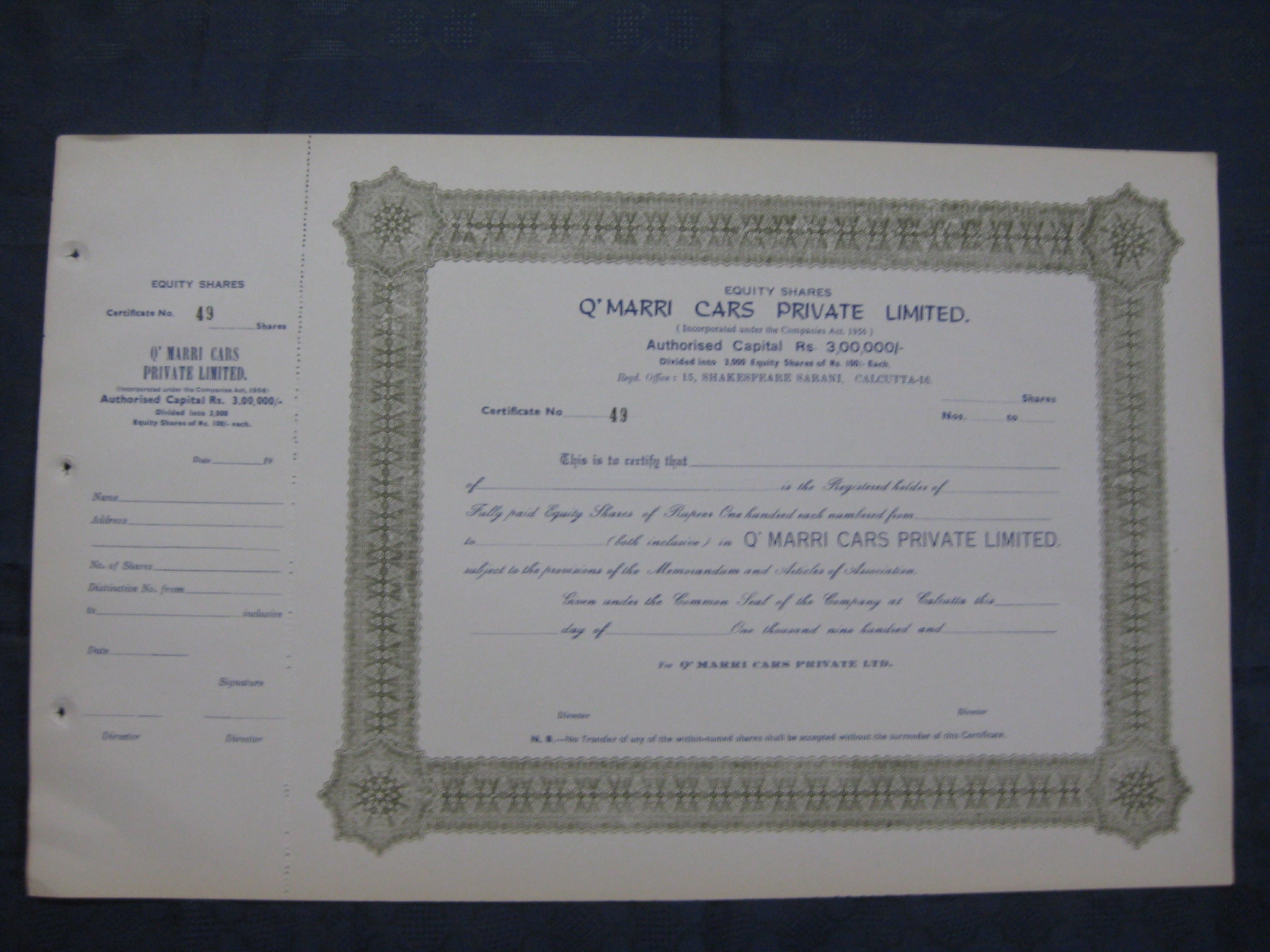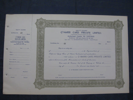 India Q' Marri Cars Private Ltd. Blank Share Certificate # FB5