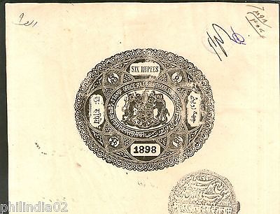 India Fiscal Bharatpur State Rs. 6 Coat of Arms Stamp Paper T10 KM260 # 10909D