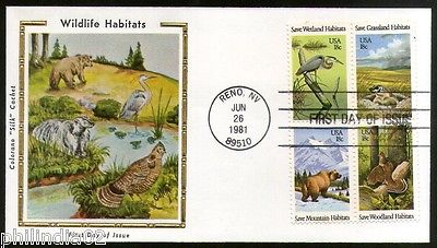 United States 1980 Bear Bird Animal Wildlife Colorono Silk FDC Sc 1924a # 16189