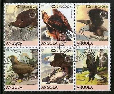Angola 2000 Birds of Prey Golden Eagle Raptor Setenant BLK/6 Cancelled # 13484